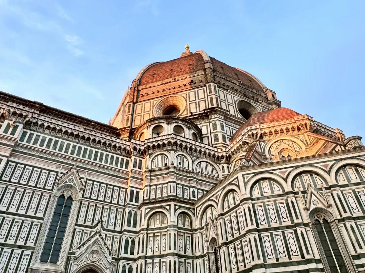離開了古都羅馬後,我們來到藝術之都──佛羅倫斯。這裡是文藝復興的搖籃,每一個角落都散發出濃厚的藝術氣息。走在老城區的小巷,踩著石板路,彷彿能聽見歷史在耳邊低語。我們仰望著聖母百花大教堂雄偉的穹頂,拍下這座美得不可思議的教堂身影