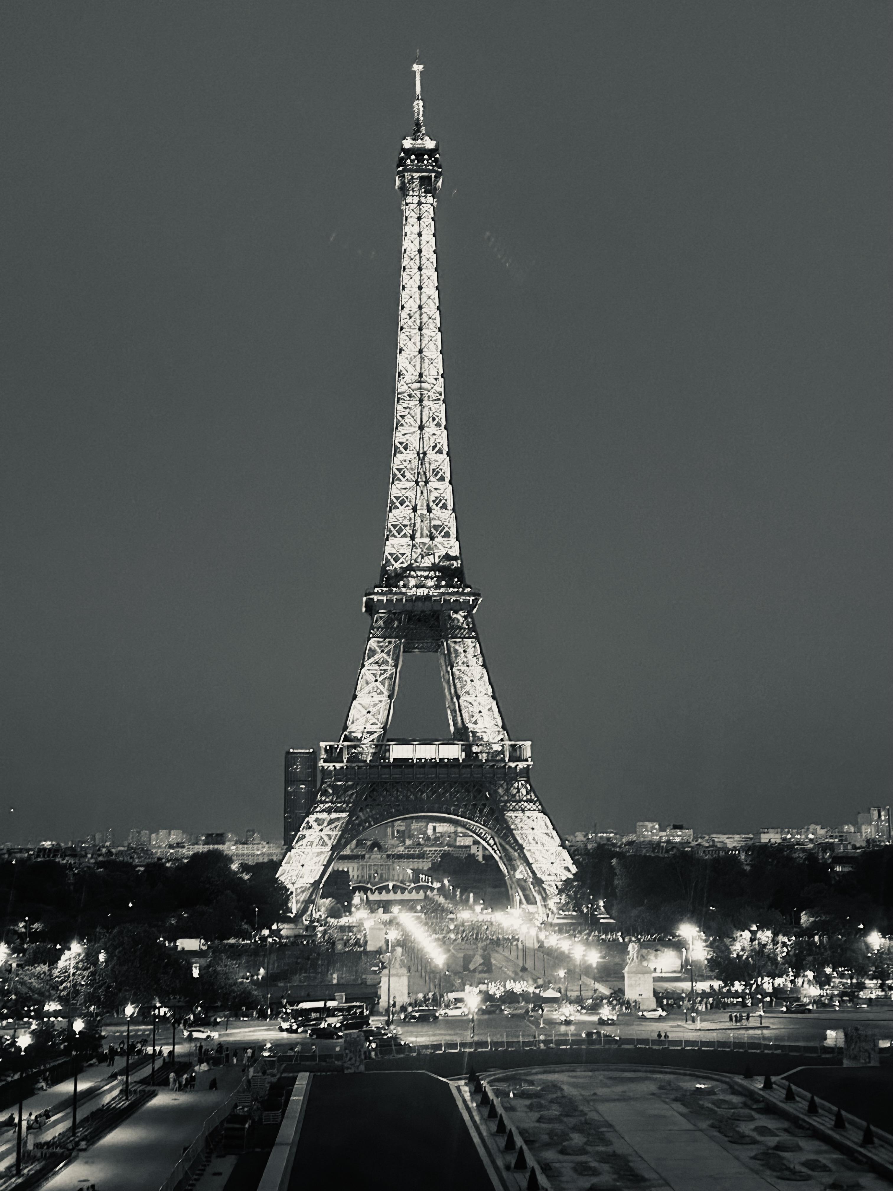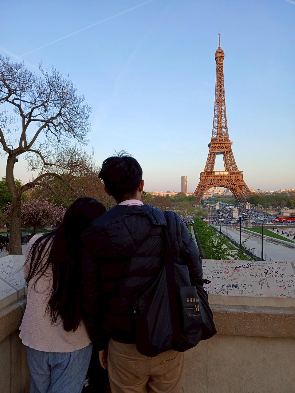 圖中是巴黎著名地標,巴黎鐵塔,在入夜後會亮燈跟定點的燈光秀,站在對面的投卡德侯花園往鐵塔眺望,是極佳的視角,所以也在這裡拍了很多照片。