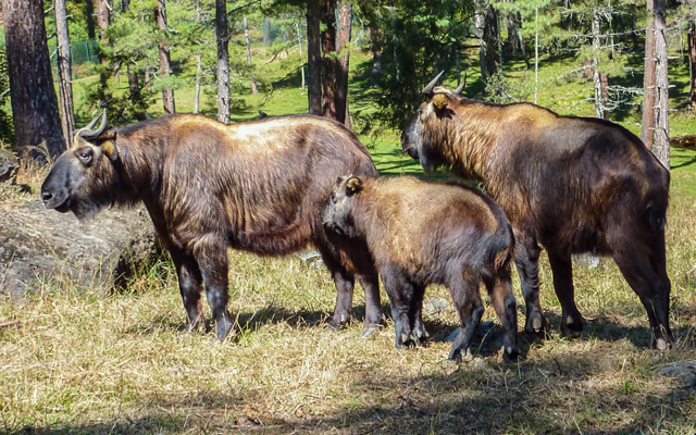 羚牛是不丹最具代表性的動物,為不丹的國獸,又稱為塔金。最初是一個小型動物園,後來發現即使放歸自由,也無法適應山林生活,因此變成了保護區。遊客可以隔着柵欄觀賞牛頭羊身的羚牛。羚牛是瀕危保護級動物,僅有極少數分佈在不丹、尼泊爾、緬甸等國家。
