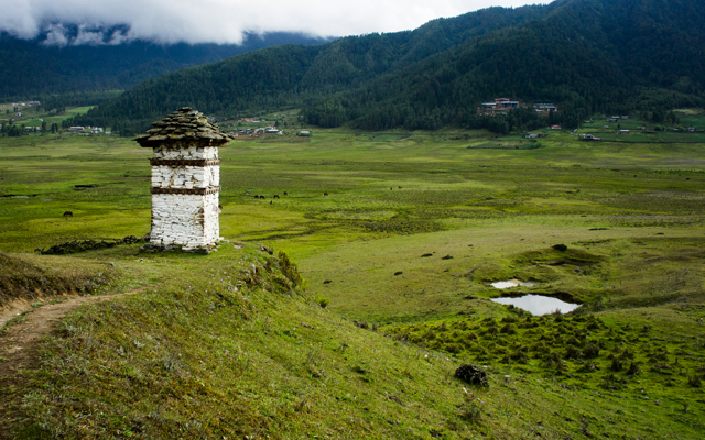 海拔高度超過3000公尺,保留著不丹最美麗的梯田景觀,這一帶山谷也是珍貴候鳥黑頸鶴的保護地。每年冬天,黑頸鶴會從西伯利亞飛來棲息。為了保護這群嬌客,不丹禁止電線拉入這片淨土,也因如此,當地農民使用的是政府提供,最先進的太陽能發電設備。
