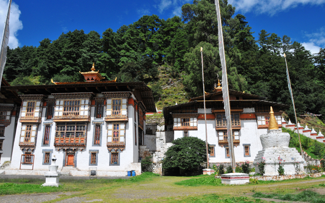 古杰寺是不丹中部最重要的佛寺,傳說蓮花生大士在洞穴中閉關修行,在石上留下了他身體的印記。古杰寺內有三座並排的廟宇,廟宇的建築跟城堡一樣宏偉。第一至三任國王的遺體都在這裡,可顯現這座廟宇在不丹的地位重要。「蓮花生大士是佛教偉大的成就者之一」