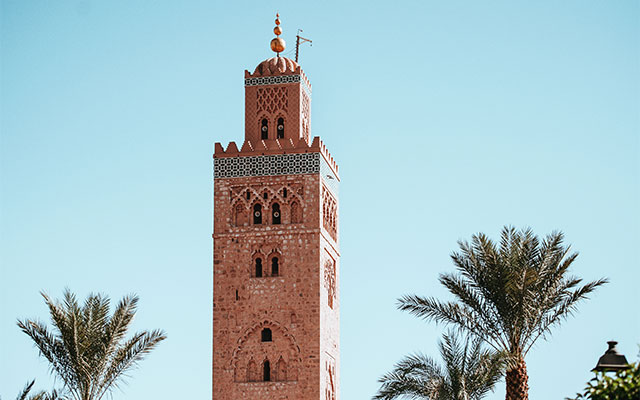 庫圖比亞清真寺是馬拉喀什的重要地標之一,庫圖比亞宣禮塔高達70公尺,建於12世紀,是融合伊斯蘭與安達魯西亞特色的建築典範。