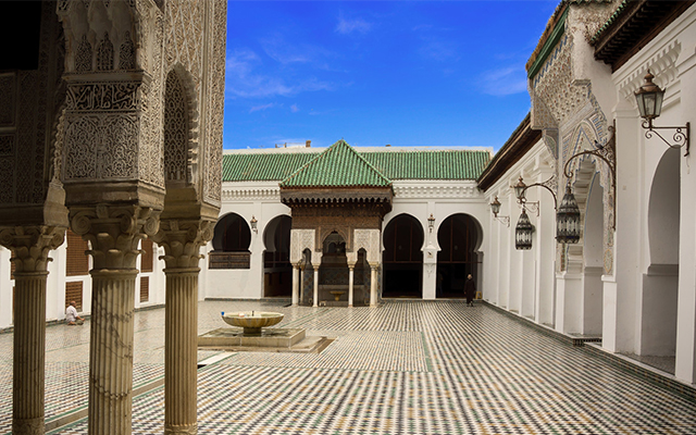 這是世界最古老的大學,名叫卡拉維因大學清真寺,在摩洛哥第二大城菲斯,埋藏在犬牙交錯的狹窄巷道深層。卡拉維因清真寺不允許非穆斯林入內,四面都與周遭建築相連,共開了14 個門,整體外觀難以得見。