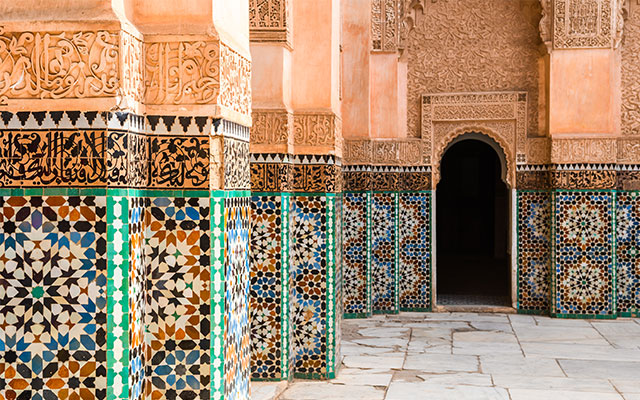 這裡有媲美西班牙阿爾罕布拉宮,最美最大的伊斯蘭建築,以幾何的馬賽克陶瓷磚、精細複雜的阿拉伯紋飾、可蘭經文飾帶來的裝飾,細膩且輕巧的結構搭配中庭與水池,在光和影的交錯與變換下,恍如隔世。
