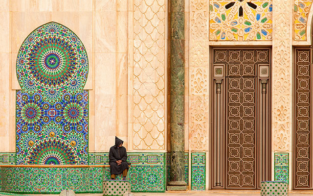 法國建築大師Michel PinSeau所設計、以白色大理石雕砌而成的哈山二世清真寺(寺如逢民眾禱告時間將可能謝絕入內參觀)。是摩洛哥境內最大、最新的一座清真寺,耗時7年耗資近6億美元。建築面積2萬平方米,禮拜殿及廣場可容納10萬人。
