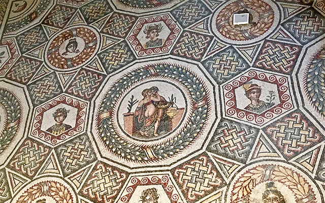 參觀鎮上最著名的『羅馬人鄉村別墅』,根據研判可能為昔日羅馬執政官『馬克米西安』的別墅;帝王般堂皇的大宅院,專供羅馬帝王家庭到鄉間打獵休息之用,壁上掛有一系列別緻的馬賽克鑲嵌畫,都是出自名家之手。