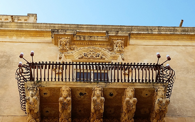 1693年的地震將諾托徹底夷為平地,在廢墟上重新規劃的諾托成了島上最完整的西西里式巴洛克風格小鎮。由凱旋門引領進城,18世紀聖尼古拉大教堂矗立在磅礡氣勢的階梯上,旁邊的尼可拉奇宮,陽台下的托架裝飾獅子、天使等雕花,繁複中帶細膩,是經典作品。