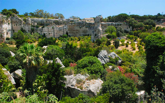 占地廣大,保留大量的古蹟群及古老墓園,有建於西元前五世紀、直徑超過138公尺的希臘劇場,是西西里島上最大的希臘劇場;天堂採石場,據說古時候囚犯被送來此地做苦工,處處留有奇形怪狀的洞穴(如:曾為暴君偷聽人犯口供,傳音效果佳的迪歐尼索的耳朵 。