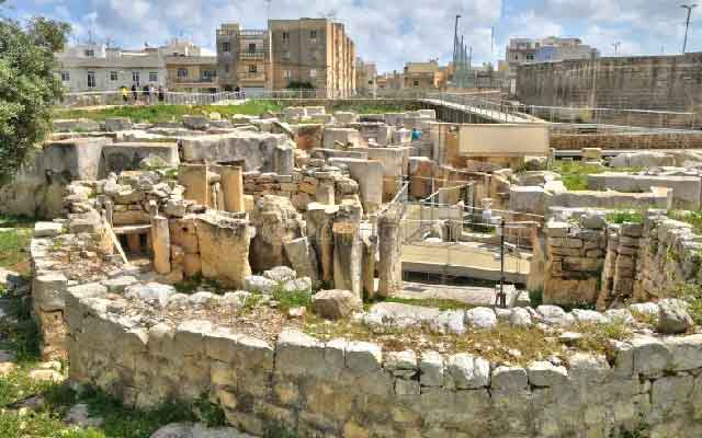 巨石神殿群由四座建築組成,建於新石器時代晚期,是馬爾他最重要的史前遺址之一。這些神殿的裝飾極為華麗,其中最具代表性的是身穿百褶裙的巨大雕像,象徵著古代文明的興起。至今這些神殿仍顯示出史前居民的宗教和生活方式,是研究馬爾他早期文明的重要證據。