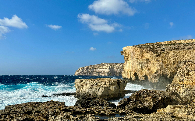 馬爾他第二大島,人口約三萬,擁有悠久的新石器時代歷史。島上景觀涵蓋古老神殿、壯麗海岸與安靜小鎮。其中最具代表性的藍窗,高28公尺的石灰岩拱門曾吸引遊客與影視作品青睞。藍窗因長期受海浪侵蝕,最終於2017年坍塌,成為無法再見的絕美回憶。