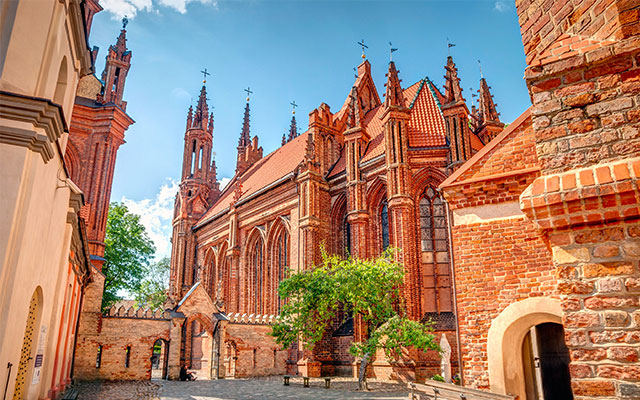 古老維爾紐斯大學,建築富麗堂皇,是集哥德、巴洛克、文藝復興和古典風格於一體的獨特景觀,為立陶宛造就了數以千計的優秀人才。聖安娜教堂是名聞世界標準的哥德式建築、彼得保羅教堂來自義大利大師所興建,共超過2000只精緻的雕刻,內部金碧輝煌。