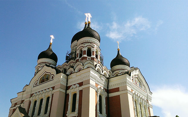 塔林舊城區山上的涅夫斯基教堂是東正教堂的代表,洋蔥頭尖頂造型瑰麗,桃紅色的外牆也分外嬌美。三姊妹之屋15世紀所建與里加三兄弟之屋相比美,三姐妹之屋之所以特別有名氣,因為相同的三棟建築物,別樹一格的建築方式,成為塔林的特色。