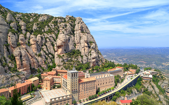 又稱鋸齒山的蒙特塞拉山,距離巴塞隆納60公里,是一處結合自然奇景與宗教信仰的心靈聖地,在平原中矗然而起的火山凝灰岩,氣勢磅礡,形狀相當奇特,彷彿被鋸子鋸的渾然天成。修道院中的黑瑪麗亞像更是信徒爭相前往朝奉的原因。如遇修道院關閉將改外部參觀。