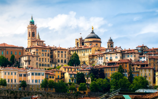 貝爾加莫位於義大利北部,分為上城和下城。上城坐落於山丘,保存著中世紀城牆和古老建築,風景優美,充滿歷史氛圍。下城則是較現代化的區域,擁有繁華的商業區、餐廳和文化設施,兩者共同塑造了這座既古典又現代的城市。