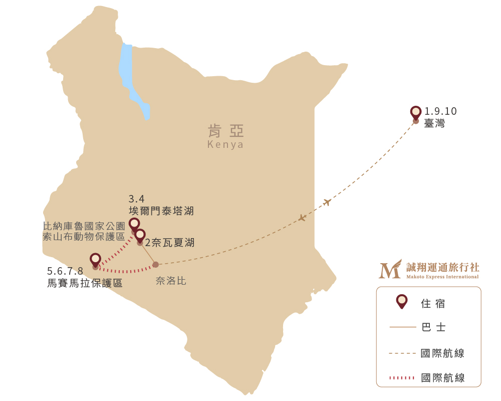 阿聯酋航空奈洛比來回、兩段國內飛機取代拉車 埃爾門泰塔湖、比納庫魯湖、索山布動物保護區、奈瓦夏湖水上遊獵 馬賽馬拉保護區5天4夜深度獵遊、頂級野奢營地、Carnivore 非洲烤肉獸宴