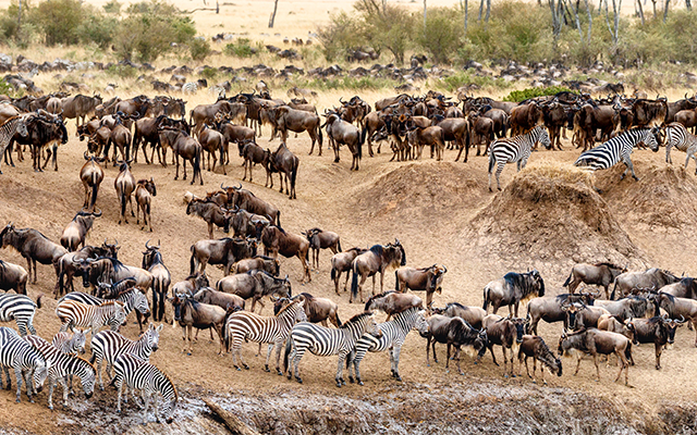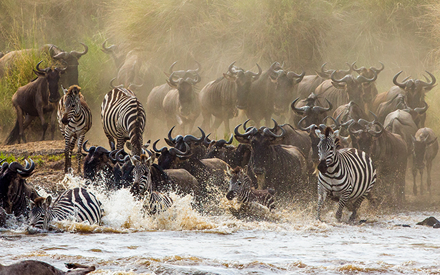 動物大遷徙發生於肯亞與坦尚尼亞交界的塞倫蓋蒂草原與馬賽馬拉保護區,是地球上最壯觀的野生動物遷徙之一。每年約有超過兩百萬頭角馬、斑馬與羚羊,為尋找青草與水源而遷移,途中需穿越鱷魚出沒的馬拉河,場面震撼,展現自然生態的壯麗循環。