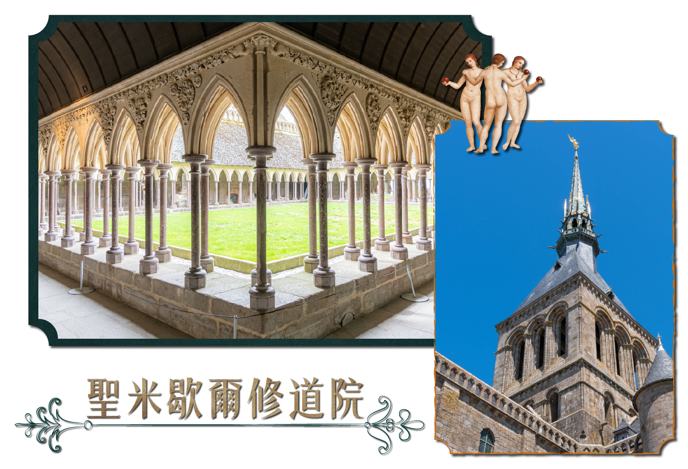 建於8世紀,坐落在聖米歇爾山頂。整座建築呈現羅馬式風格,內部裝潢華麗,1979年被列為世界遺產。登上修道院,絕佳的景觀令人無比震撼,俯瞰著海洋和古老建築,彷彿置身於童話般的世界。