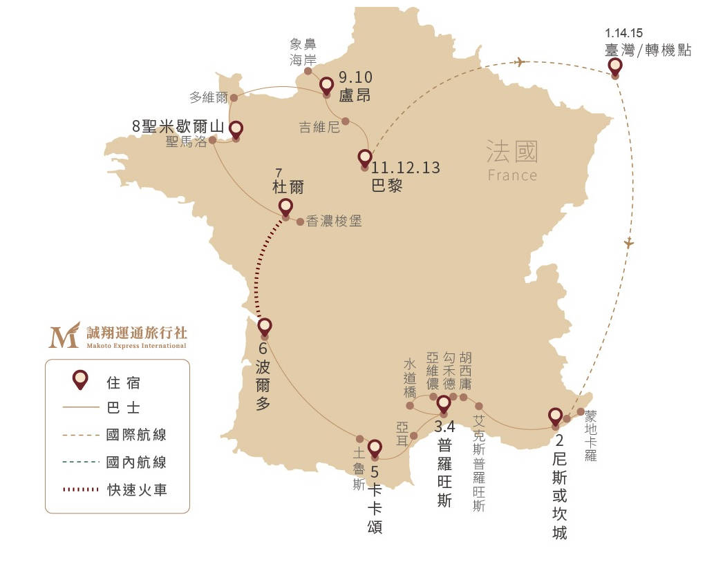 阿聯酋尼斯、巴黎雙點進出+一段快速火車、優雅旅行、悠閒蔚藍海岸、靜謐普羅旺斯山城、中世紀城堡回味、美食小鎮探奇、葡萄酒鄉巡禮、羅亞爾河城堡之旅、法國名勝聖米歇爾山、北法印象畫派之路、莫內花園、四星優選+普羅旺斯特色莊園連泊+諾曼地古城連泊+巴黎五星三晚、全程法式特色美食、塞納河遊船晚宴&巴黎鐵塔景觀餐廳、一星米其林饗宴