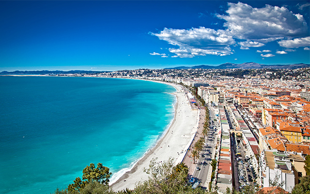 位於蔚藍海岸的尼斯是全世界最受青睞的旅遊勝地之一,介於地中海與山脈間的卓越位置,溫和的氣候與陽光,環繞天使灣的英國人大道、19世紀新古典主義風格的馬賽納廣場、眺望尼斯天使海灣景致,這是南法最受歡迎的度假勝地。