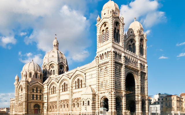 以157公尺姿態高聳矗立在馬賽市山丘上,俯視、看顧着馬賽市及港口船隻的聖母院,這是一個有八百多年歷史的朝聖地點,奉教宗指令而建的教堂,大量鑲嵌馬賽克的建築,羅馬拜占庭華麗建築風格令人乍舌。此外,教堂觀景台也是鳥瞰馬賽全市美景是最佳的地點。