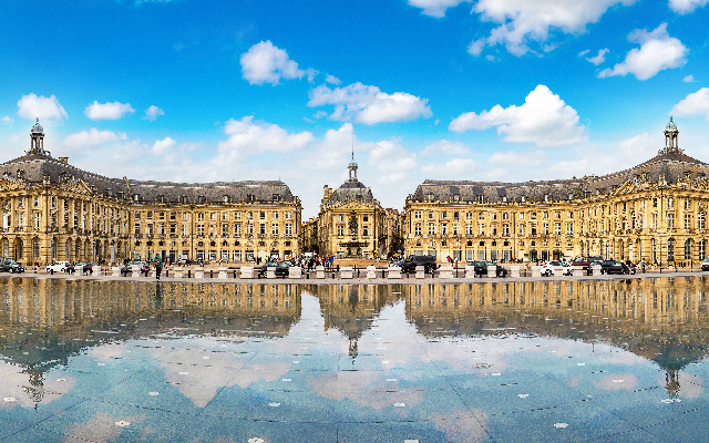 波爾多市區最美的地標,每半個小時在廣場上會有水霧式的噴泉,噴泉結束後廣場便變得像是一面鏡子一樣,映射著交易所宮,平靜無風的夜晚,還可拍到交易所宮閃閃金光的水中倒影。不管是早上或者是夜景各有不同美貌。