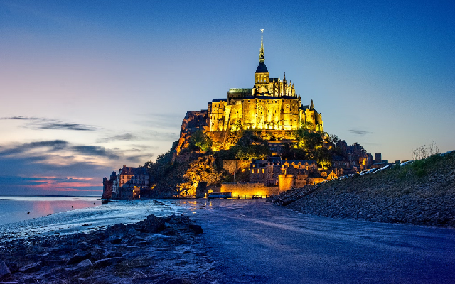 聖米歇爾山矗立在聖馬洛海灣,用哥德式卓越的建築技藝,表現了神秘、優美、崇高的強烈情感。佐以諾曼地的藍色浪花、修道院悠揚詩歌,成為法國旅行的必朝聖地之一。