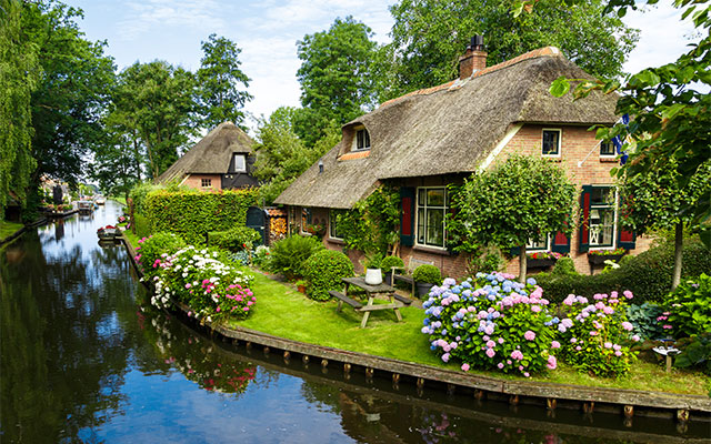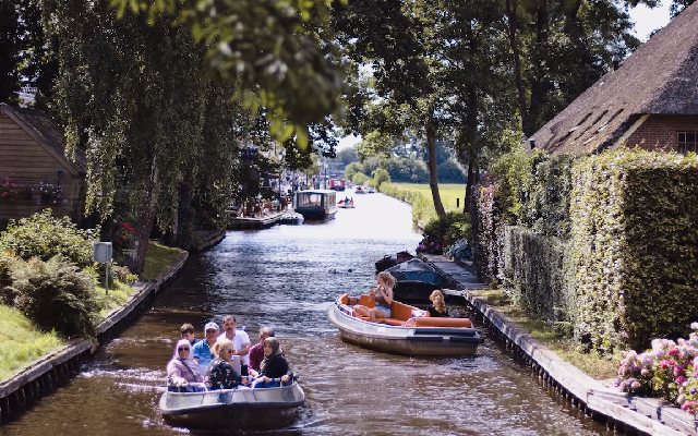 在這絕美水上童話小鎮,四處可見停泊運河岸的船隻,如同義大利威尼斯一般,搭船悠閒遊景,是完全不同的享受,今日安排電動平底船,在船夫的帶領下穿梭大小運河,美麗的羊角村景色伴隨著鳥鳴聲,完全是世外桃源。