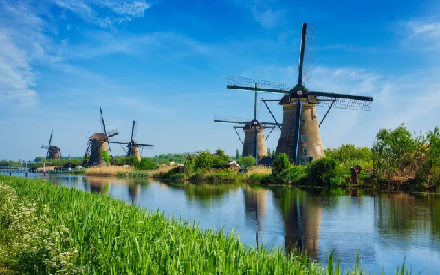 1740年開始,這些風車就佇立在此將風力轉為水車的動力,抽取過多的水並導入Lek河,使得這個低於海平面地區免於水患之苦。小孩堤防所遺留壯觀的風車美景,在1997年被聯合國納入世界文化遺產。