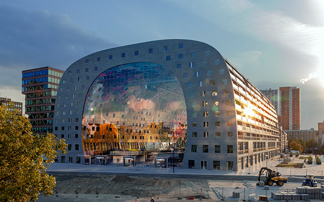 荷蘭五大創意建築之一,外形如一個巨大拱型中空建築量體,在荷蘭建築師事務所MVRDV的巧思下,不僅有著獨特的拱型外觀,內部更是色彩繽紛並符合了多功能的住商需求、同時是荷蘭第一座有蓋頂式的食品商場。