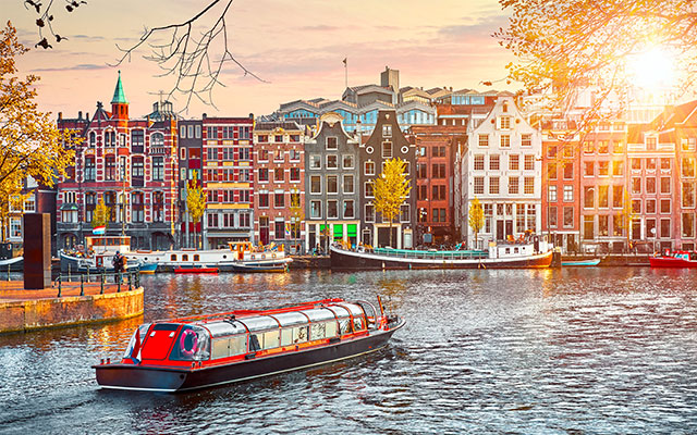 阿姆斯特丹的運河總長度超過100公里,開挖於17世紀的荷蘭黃金時代,三條主要的運河:紳士運河、王子運河和皇帝運河,開挖於17世紀的荷蘭黃金時代,組成環繞城市的同心帶,沿岸紀念建築高達1550座,搭乘運河遊覽這「北方的威尼斯」。