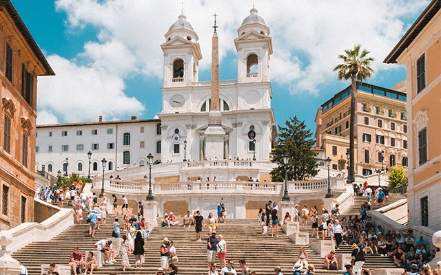 歐洲最長、最寬的階梯,共135階,連接西班牙廣場與由法國國王資助興建的天主聖三教堂,是羅馬著名的拍照地標與精品購物區。階梯在1995年被列為世界文化遺產,也是多部經典電影如《羅馬假期》的取景地,觀光人潮絡繹不絕。