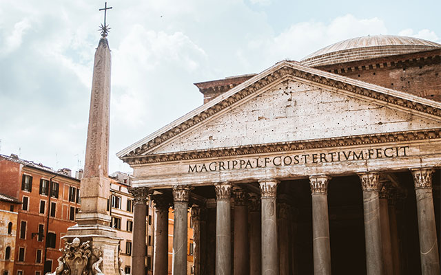 原為祭祀諸神的神殿,建於西元前27年,為古羅馬建築藝術的代表作。公元609年被改為基督教教堂,現稱「聖母與諸殉道者教堂」,並作為歷代名人長眠之地。圓頂設計精妙,採光天窗讓自然光灑入堂內,是至今保存最完整的羅馬古建築之一。